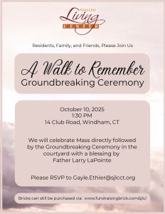 St. Joseph Living Center is offering family and friends who have or have had family members or friends who resided at our facility, a special way to remember their loved one through the purchase of an engraved brick to be placed in our courtyard walkway. We are calling this “St Joseph Living Center’s ‘A Walk to Remember’.”